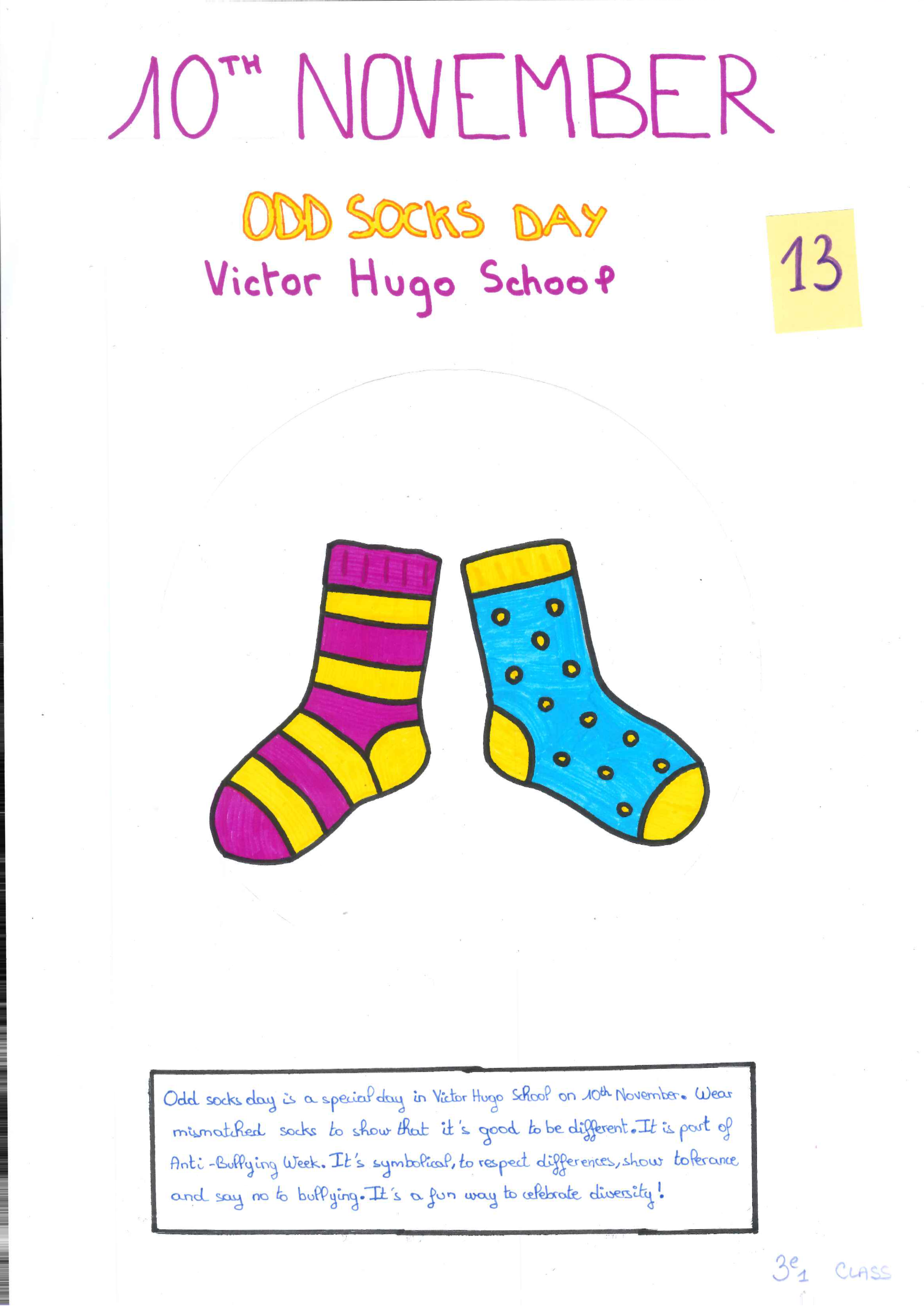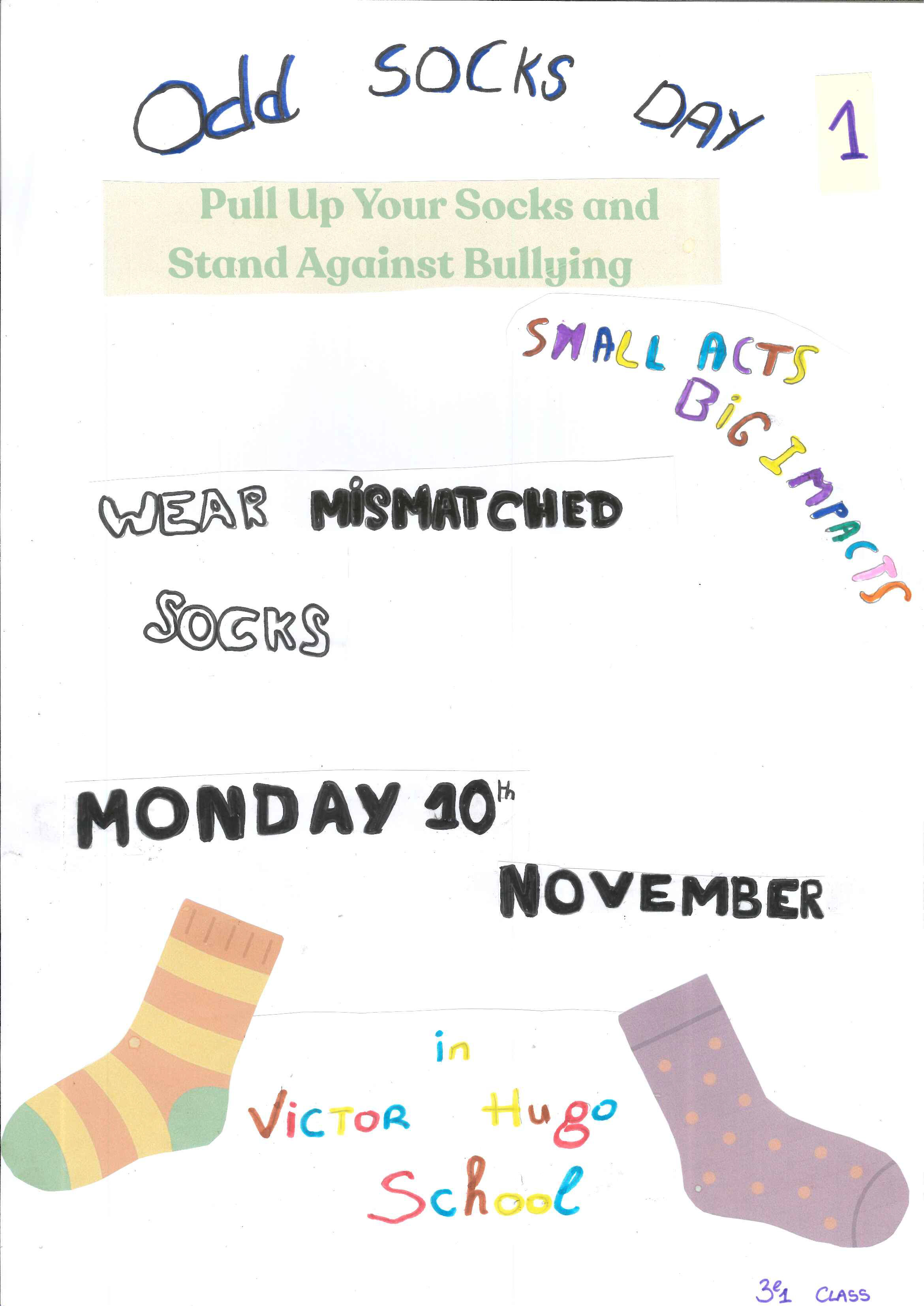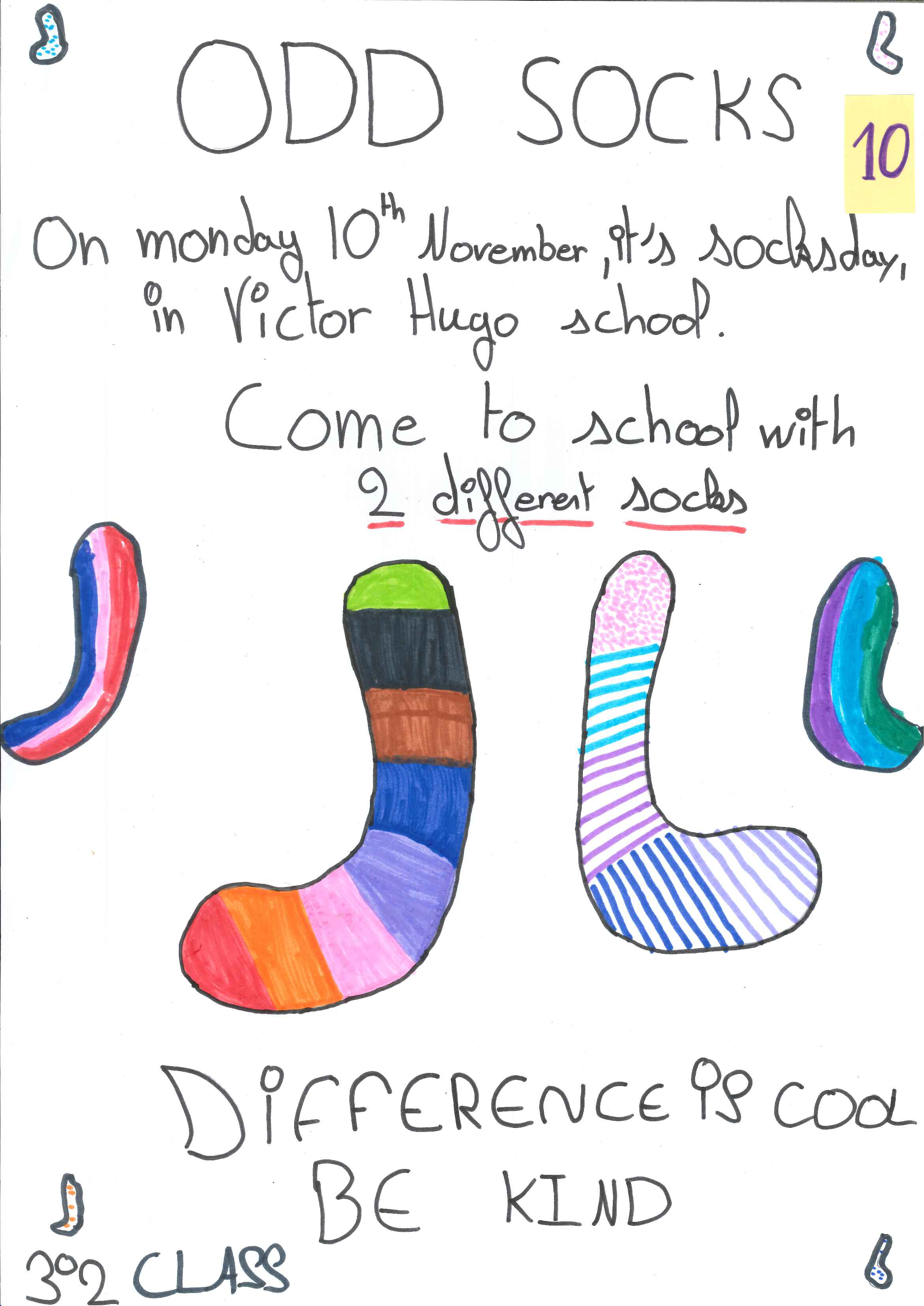 En continuité avec la semaine "Non Au Harcèlement" et dans le cadre de l'ouverture culturelle, le lundi 10/11/2025, le collège Victor Hugo participera au "Odd Socks Days" (Journée des chaussettes dépareillées) qui est une action symbolique pour la tolérance et contre le harcèlement en Grande Bretagne depuis 2017.