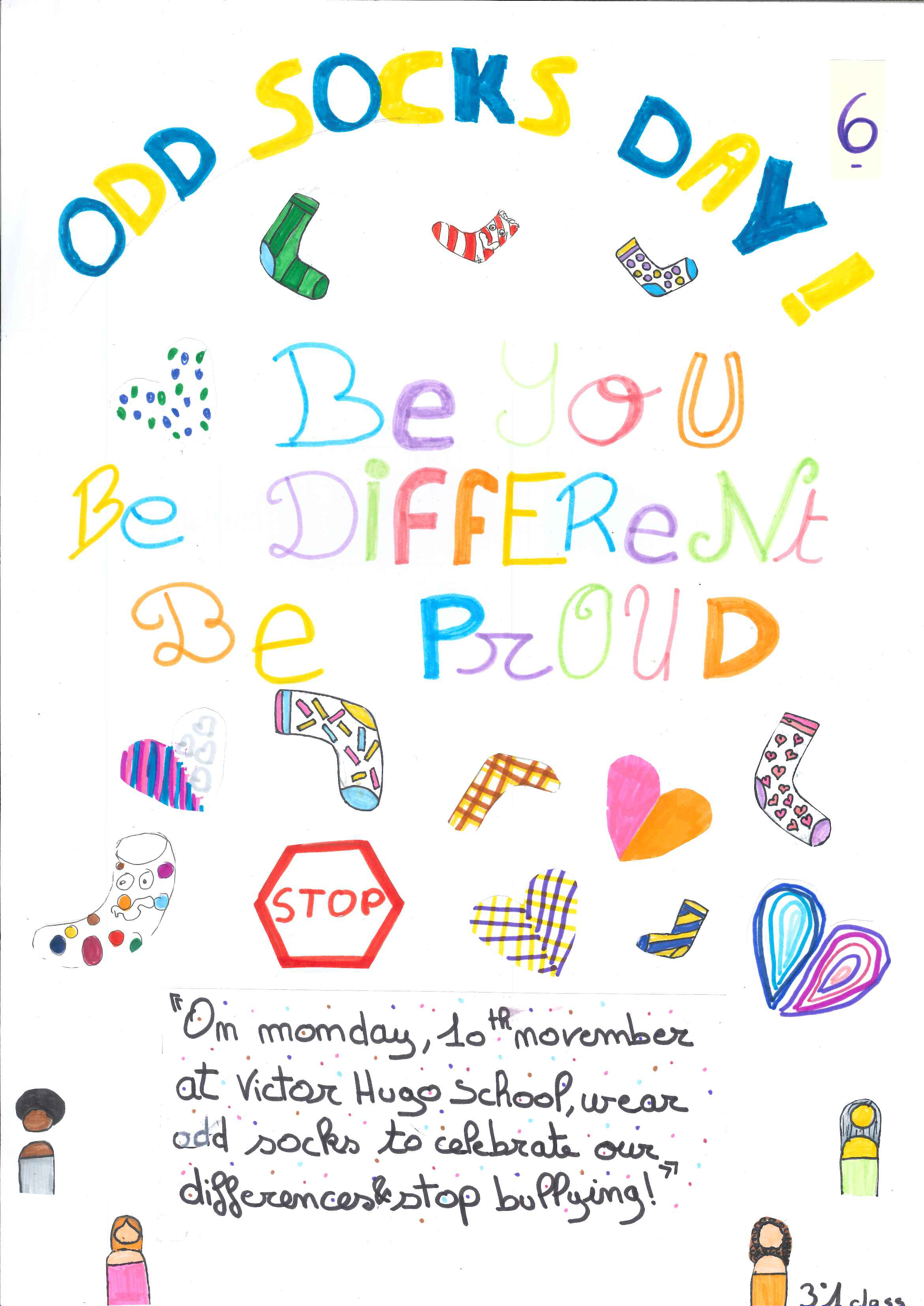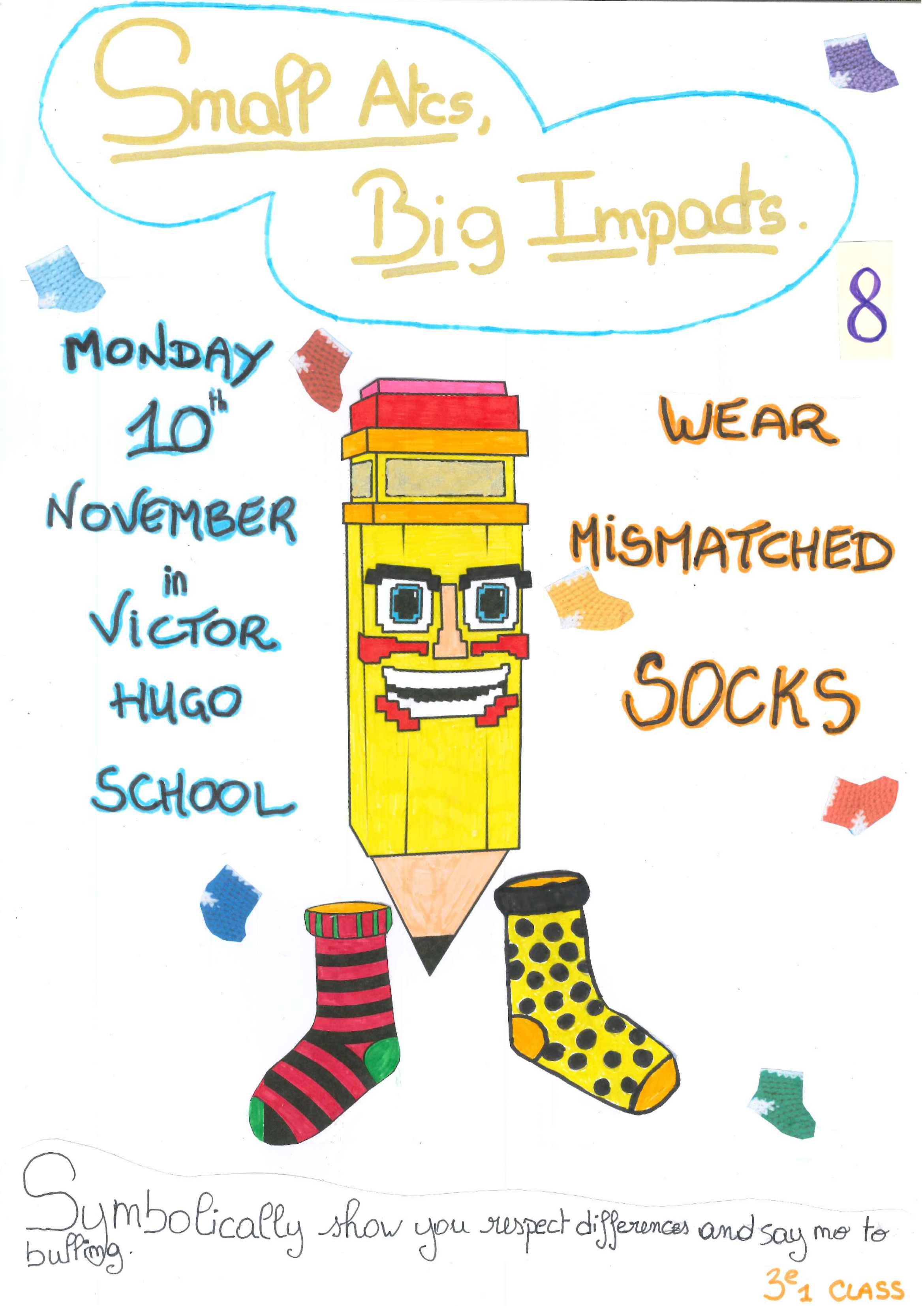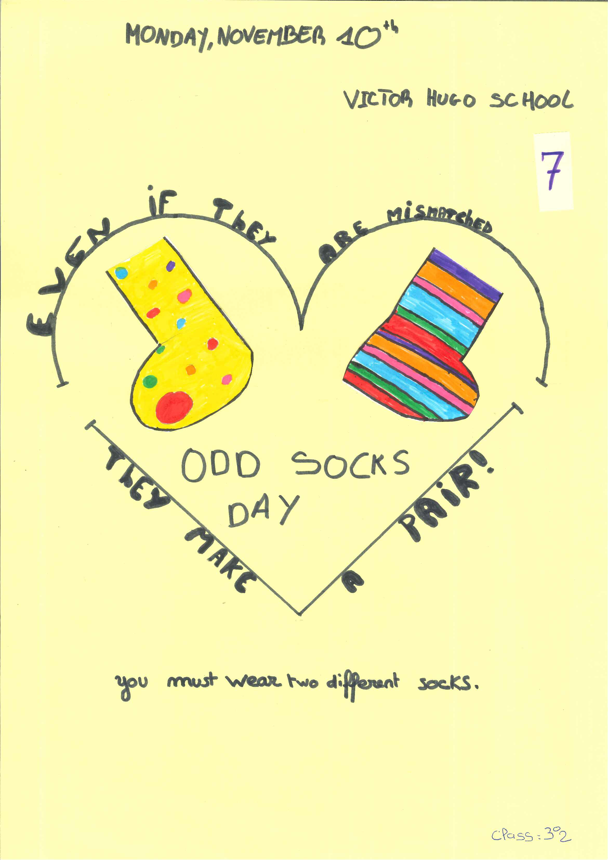 En continuité avec la semaine "Non Au Harcèlement" et dans le cadre de l'ouverture culturelle, le lundi 10/11/2025, le collège Victor Hugo participera au "Odd Socks Days" (Journée des chaussettes dépareillées) qui est une action symbolique pour la tolérance et contre le harcèlement en Grande Bretagne depuis 2017.